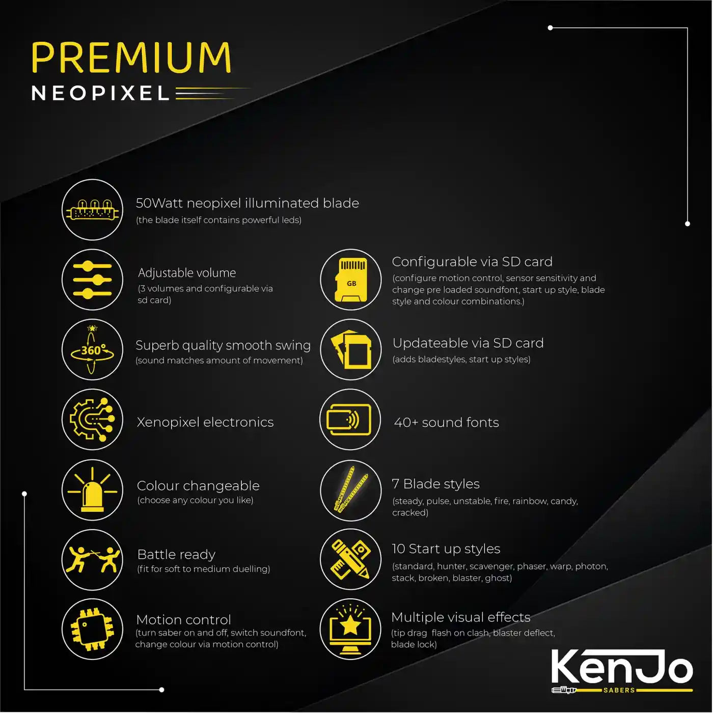 Prime Spheres Sabers are available with different soundboard types. Click on the soundboard selection help tab for an explanation or go directly to the detailed guide: What is the difference between baselit and neopixel?