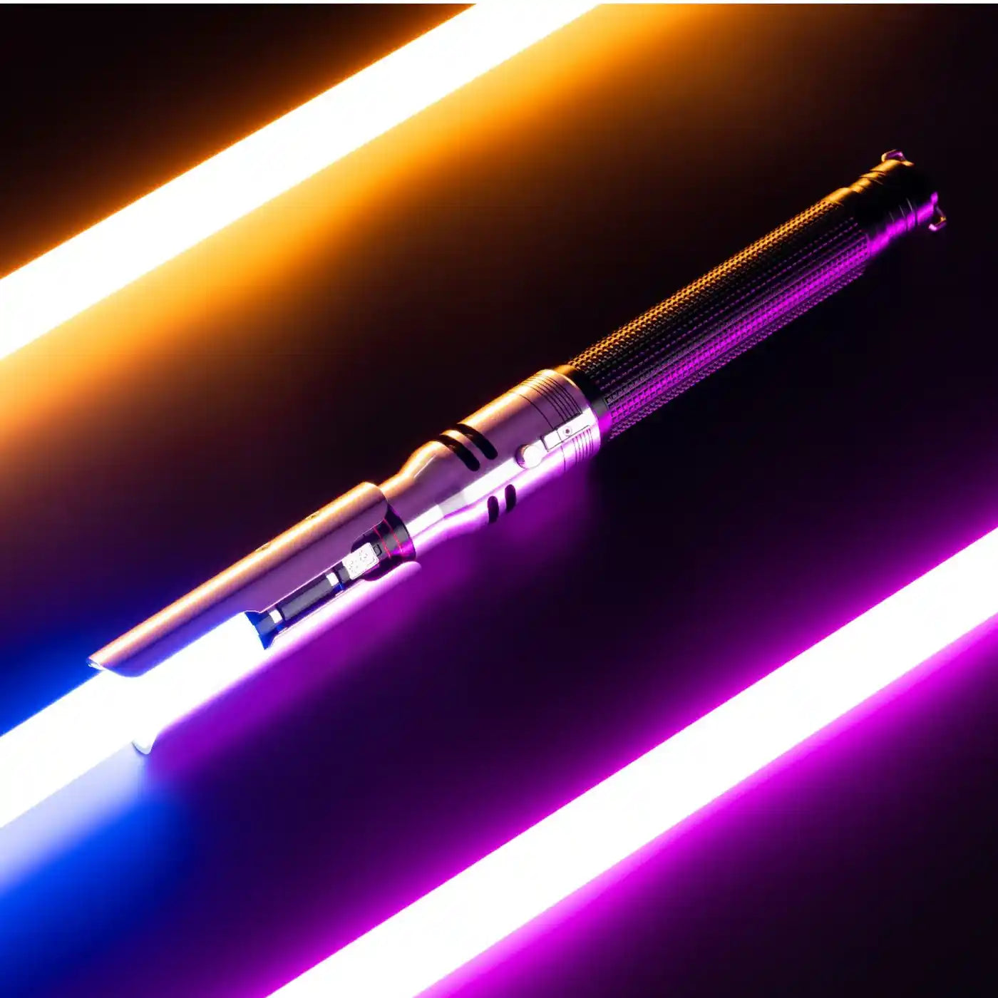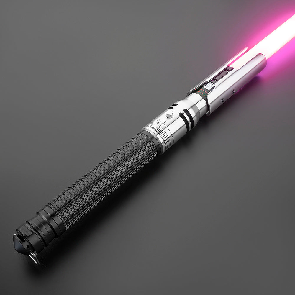 The Phoenix is a relatively long saber with a finely ribbed black grip. A grip like this is unique to this saber. The special ribbed pattern, combined with the smooth, rounded shape of the saber’s hilt, makes this model very comfortable to hold. The control button is the same color as the hilt, making it blend seamlessly into the design. This ensures a sleek and realistic look! Additionally, the charging port is hidden, and the saber is charged using the included battery charger.