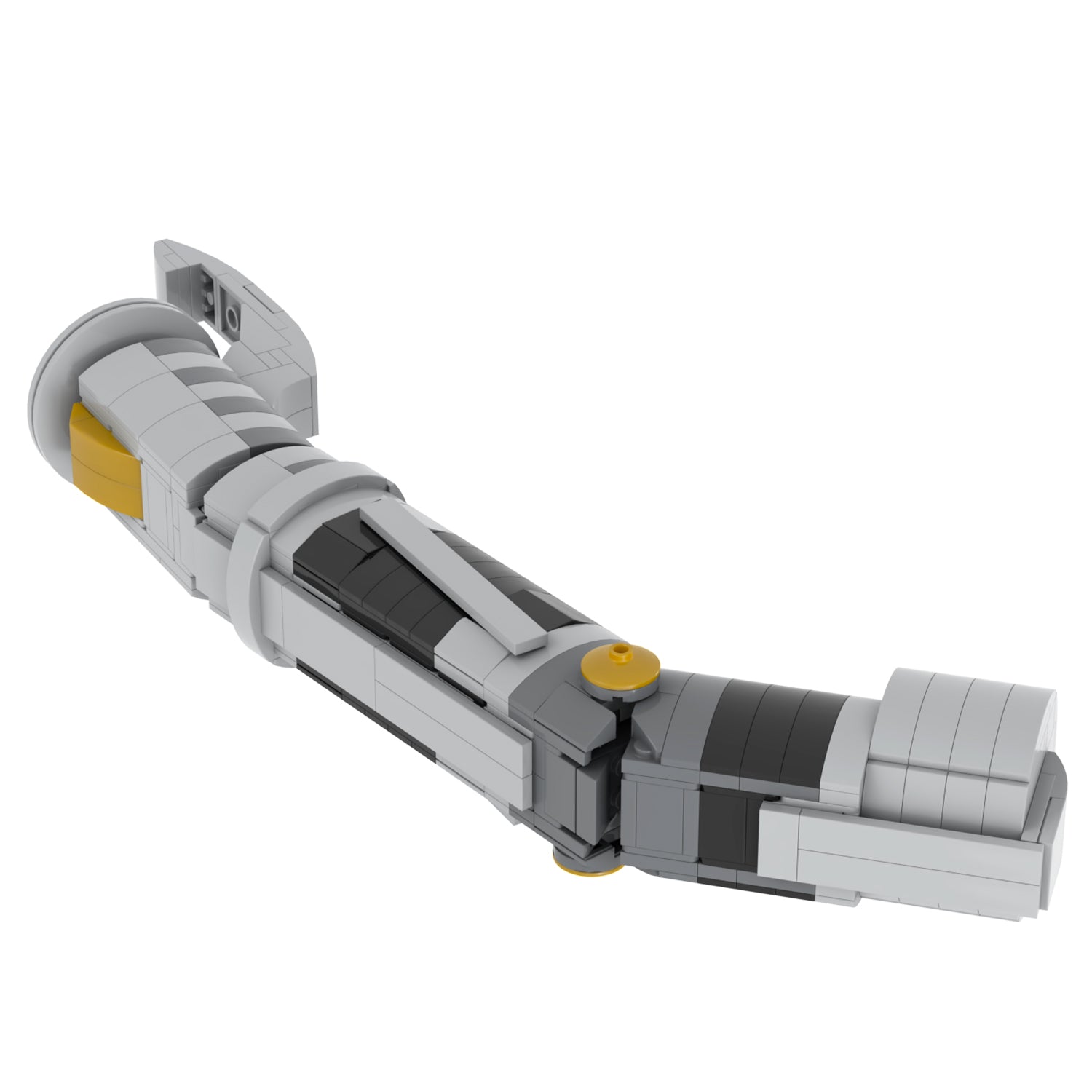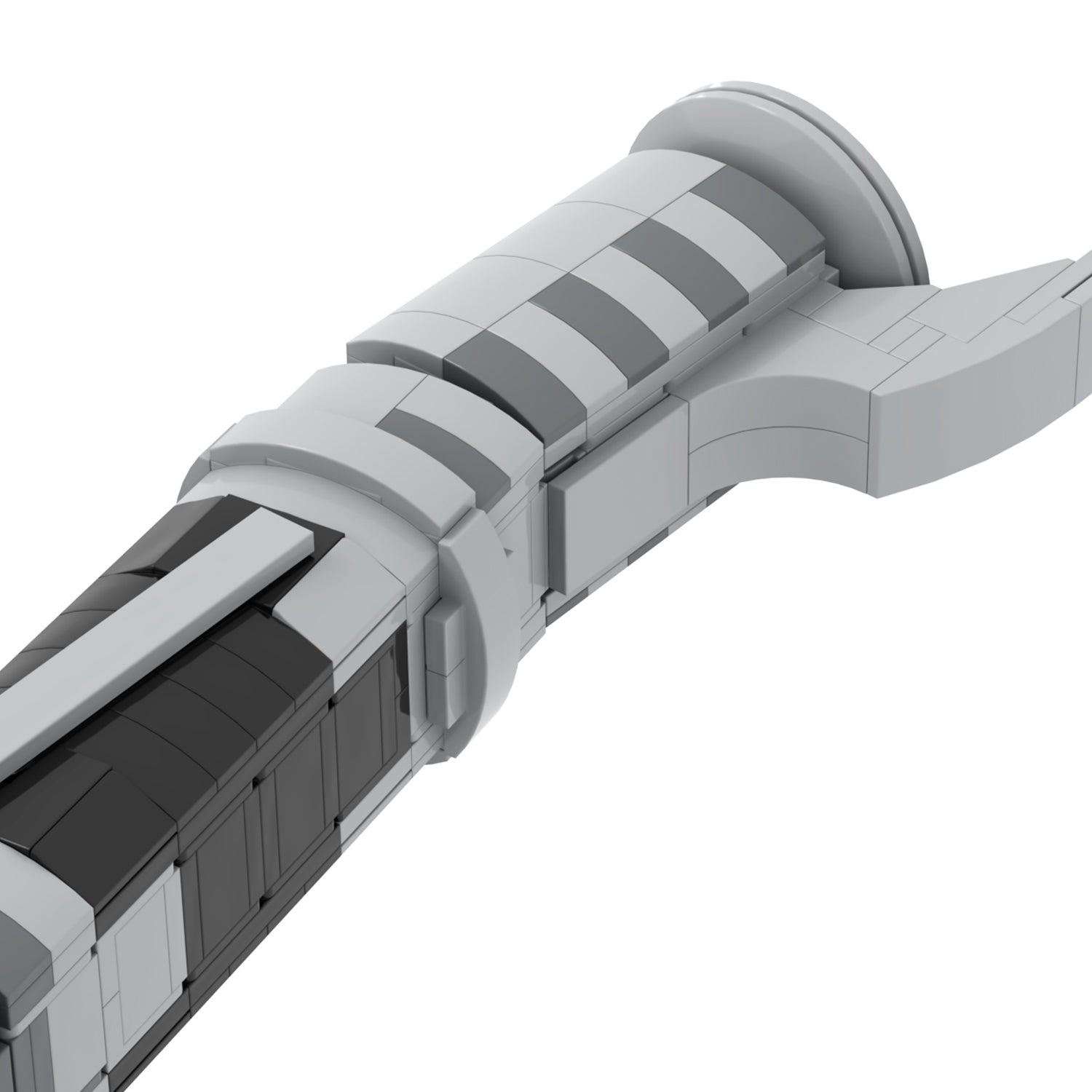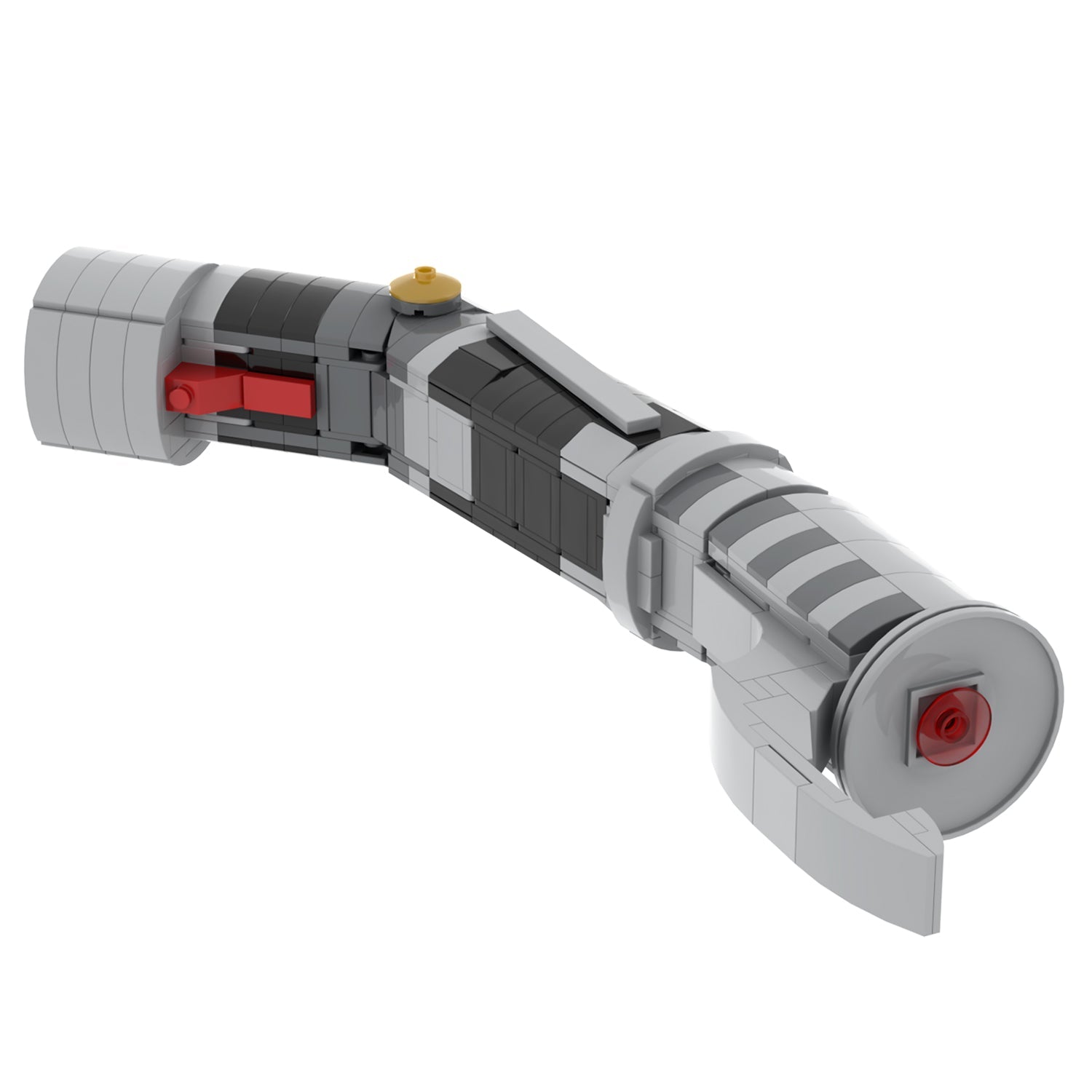 Discover the unique Counts Curve saber with the Super Bricks build set. This curved saber with a hook, made from building bricks, stands out from other sabers due to its distinctive shape and design. The gray hilt with black ribbed patterns adds a unique look to this legendary saber. Perfect for any collector looking for something different.