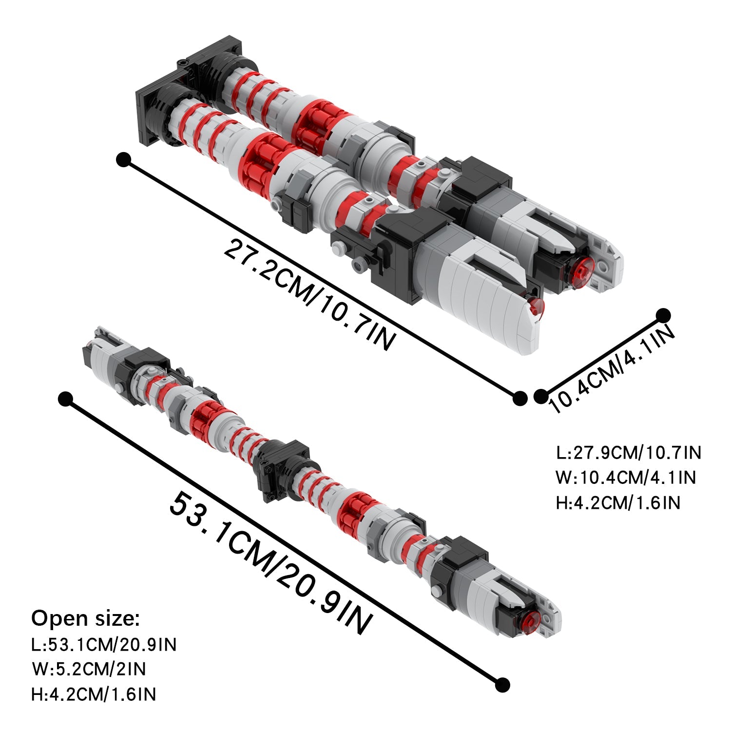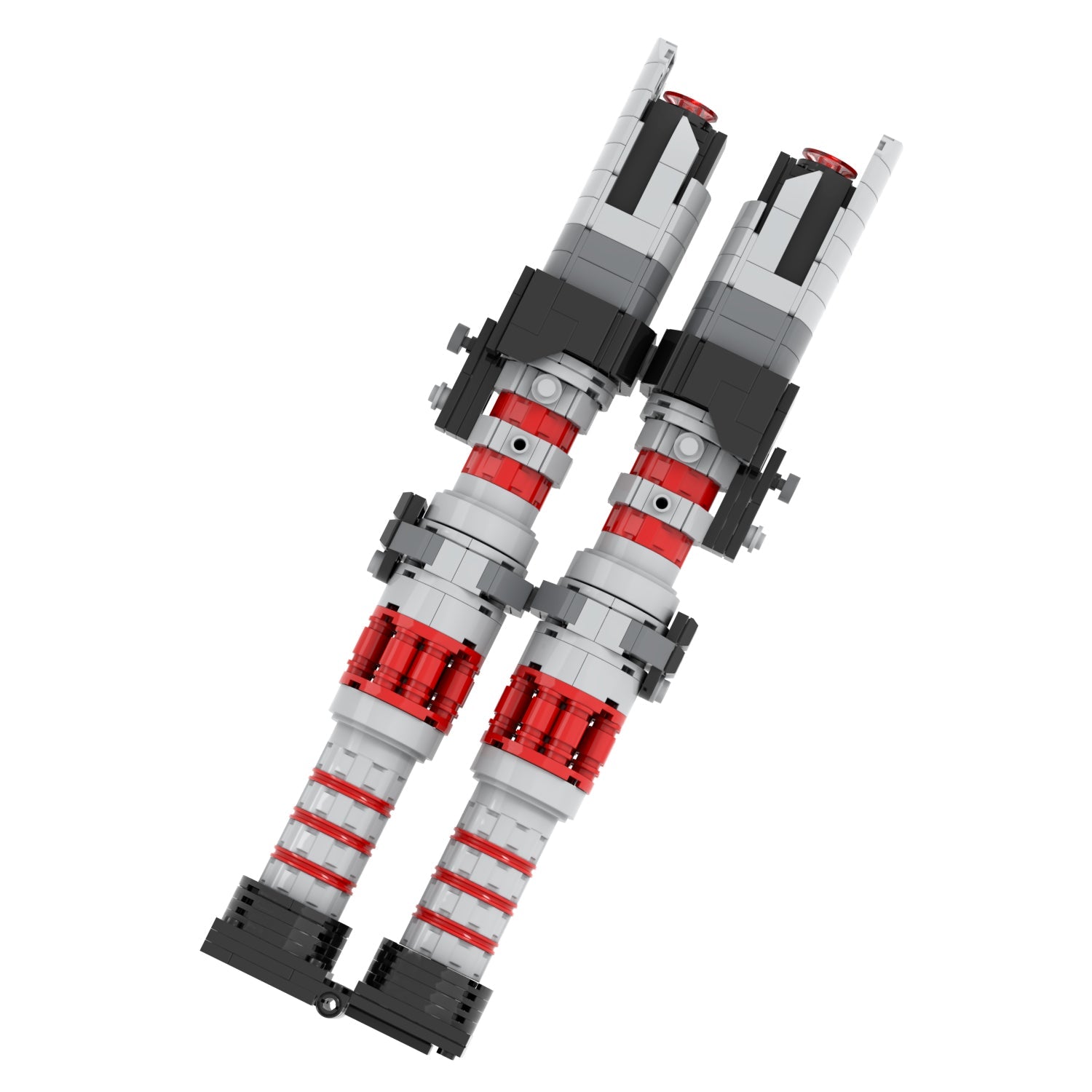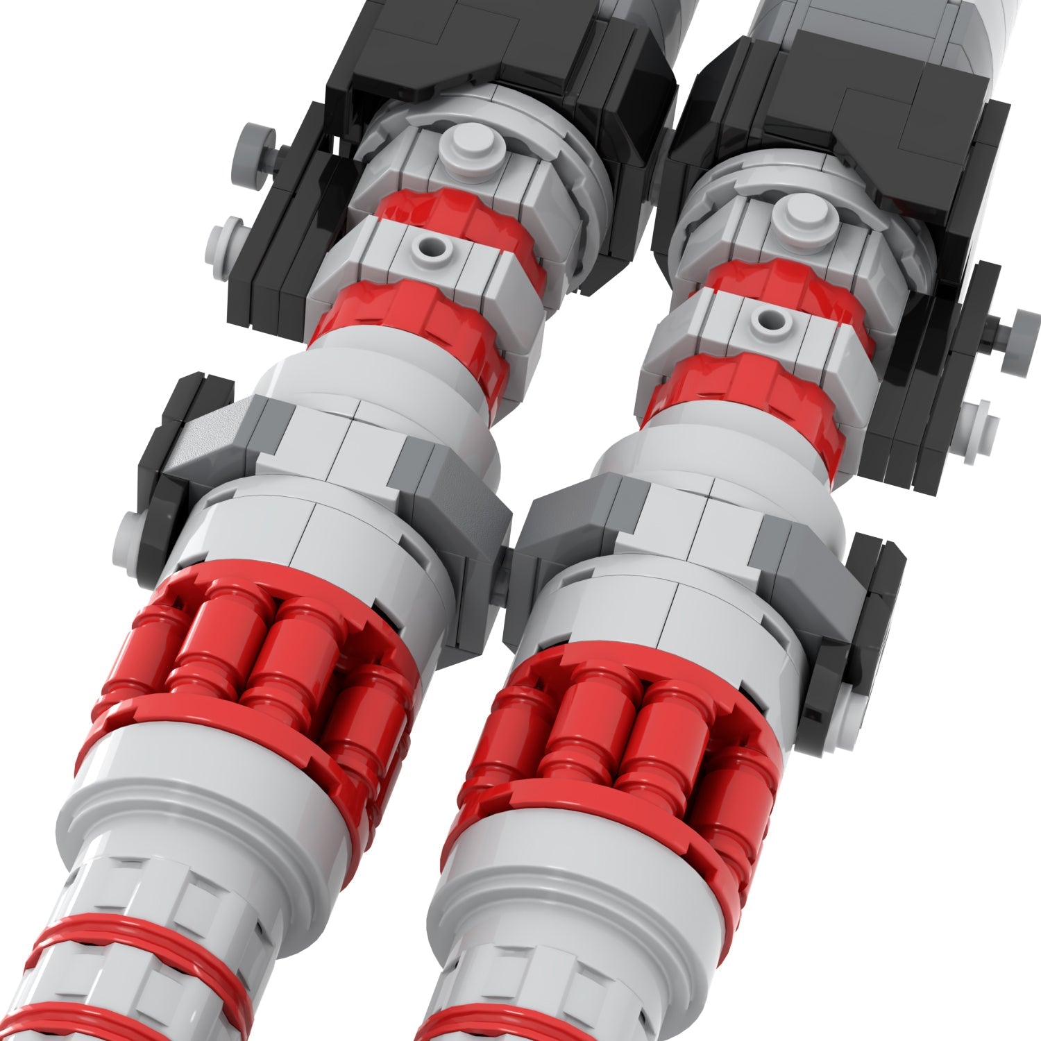 Experience the power of the dark side with the Super Bricks Delphic building set. This dual saber is inspired by the heroine from the sequels in her dark side vision. Delphic consists of two silver-colored sabers with red accents. Thanks to the flip-open mechanism, the built sabers automatically unfold into a dual saber. Add this impressive Super Bricks set to your collection!