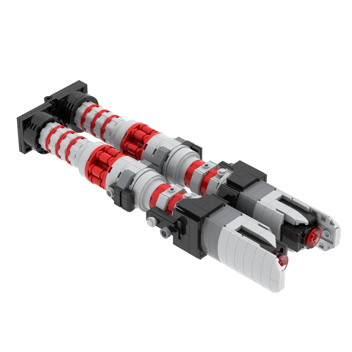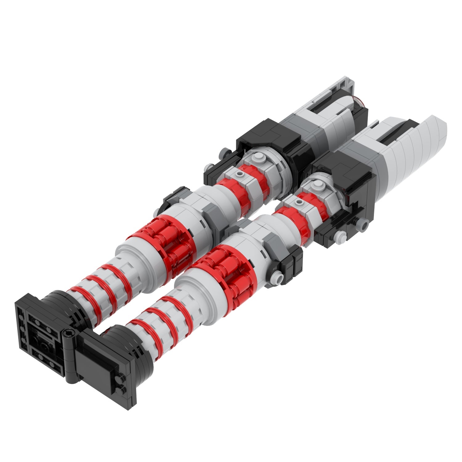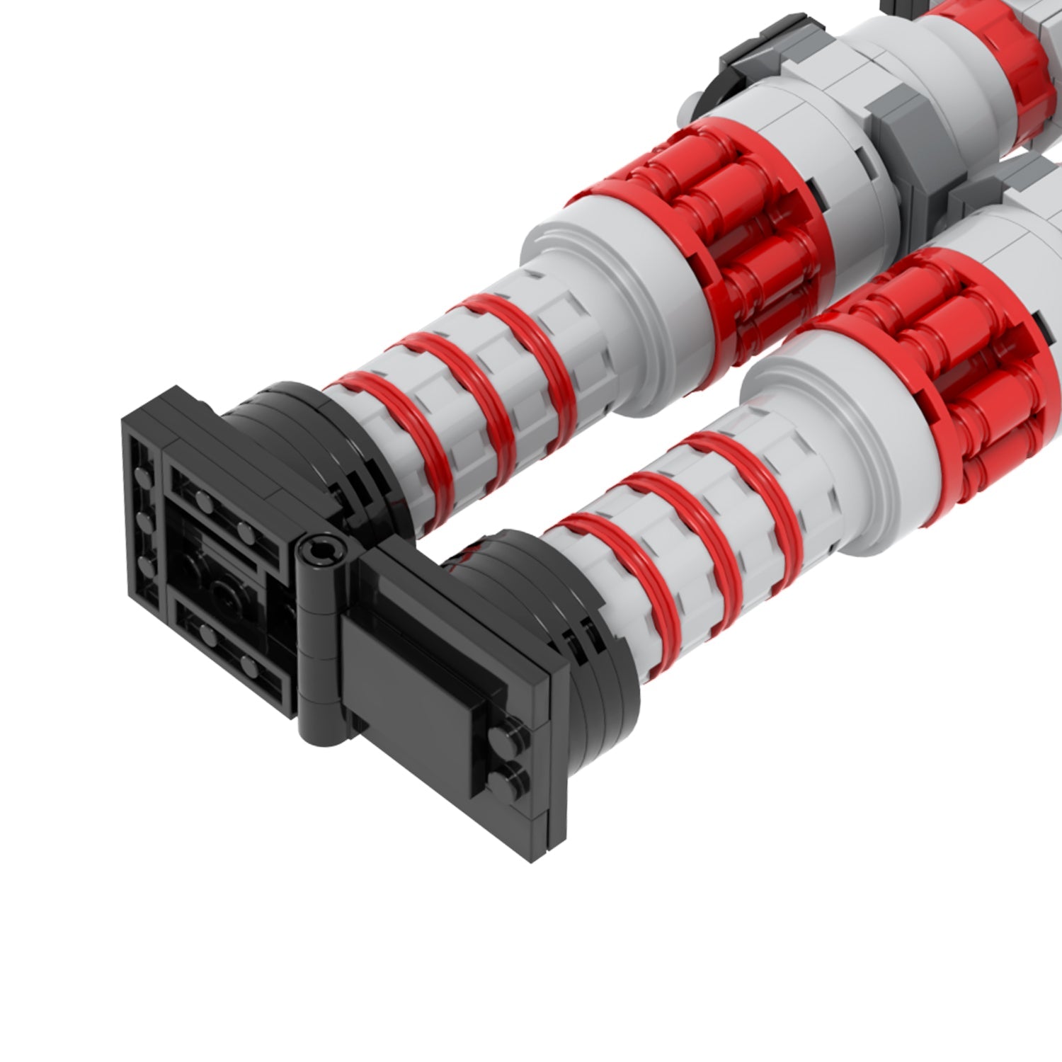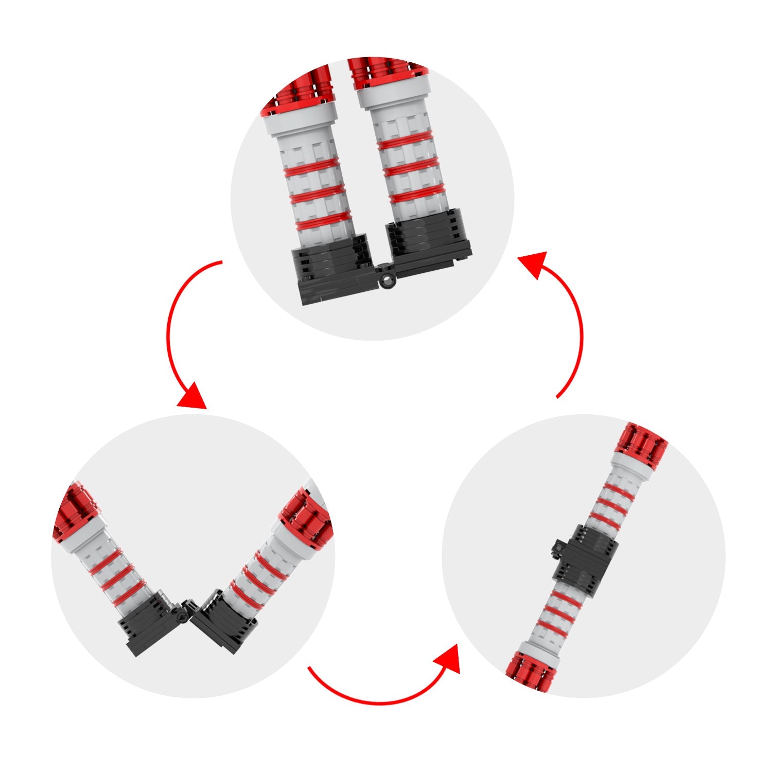 Experience the power of the dark side with the Super Bricks Delphic building set. This dual saber is inspired by the heroine from the sequels in her dark side vision. Delphic consists of two silver-colored sabers with red accents. Thanks to the flip-open mechanism, the built sabers automatically unfold into a dual saber. Add this impressive Super Bricks set to your collection!