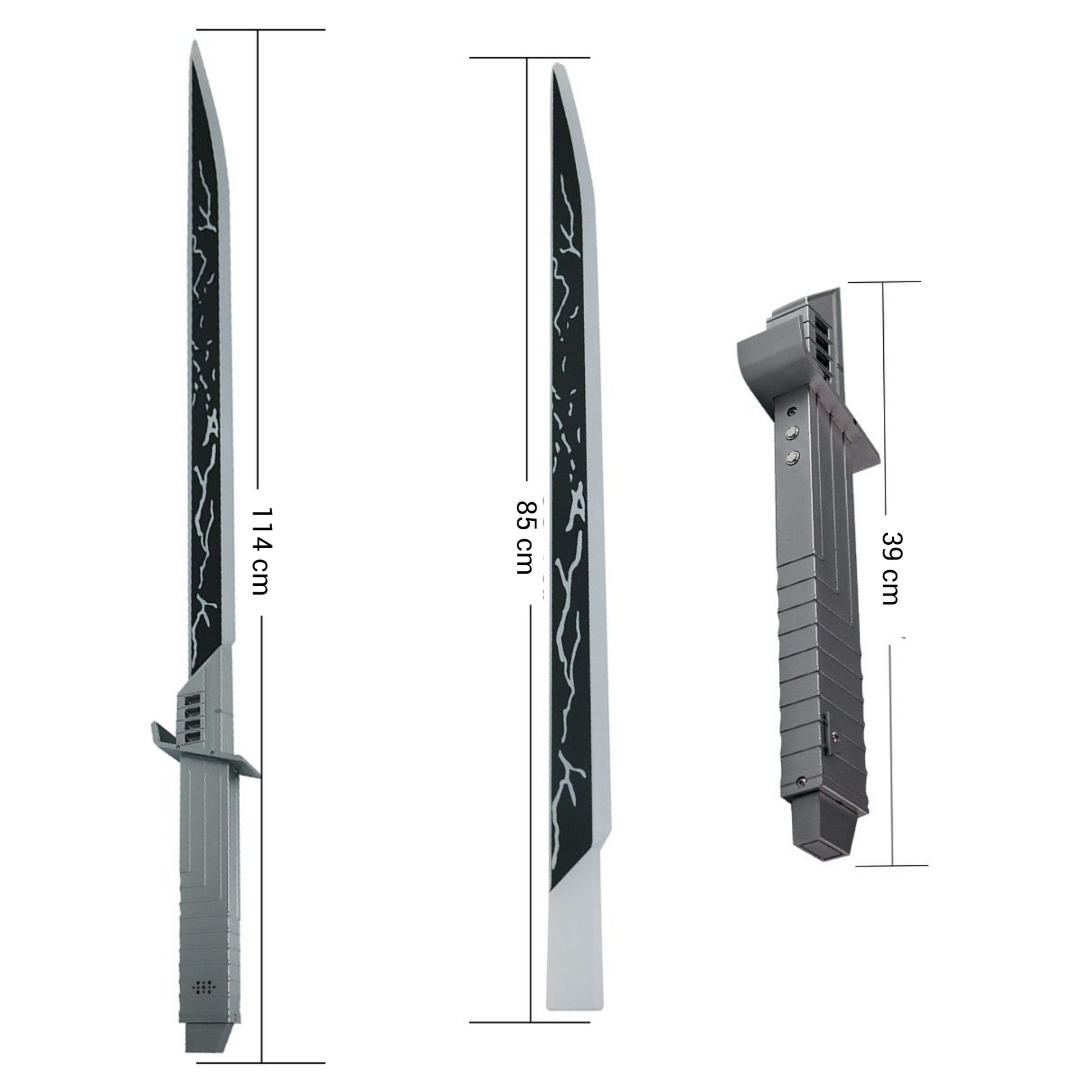 The Grey One is an exceptionally strong and sleek gray saber with a unique rectangular grip featuring milled angular grip patterns for ultimate hold and control. The handle is crafted from a single piece, making it extremely durable. The control button matches the color of the hilt, and the charging port is discreetly integrated into the bottom of the hilt.
