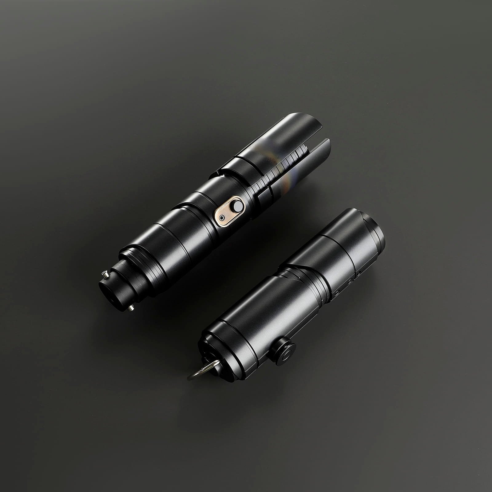 Description: The Twinstrike is a groundbreaking saber that takes innovation and versatility to a new level, inspired by the mysterious stranger from the latest series of the ancient era. This saber can be used as a single blade or split for dual-wielding. The sleek black design, featuring a robust emitter and refined finish, exudes pure power. When assembled, the saber can be attached to your belt using the D-Clip, for which you will also need the belt clip.